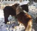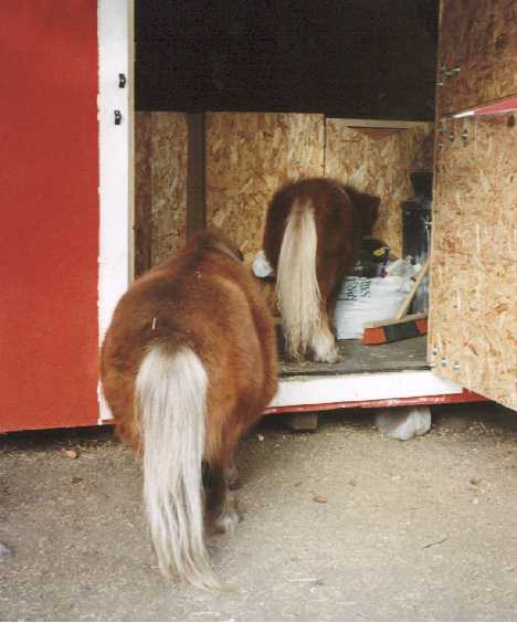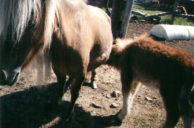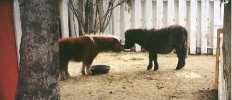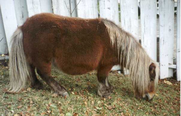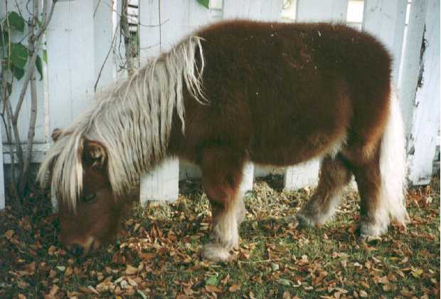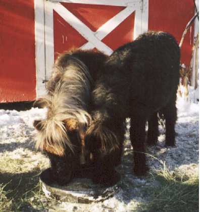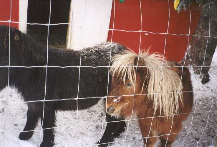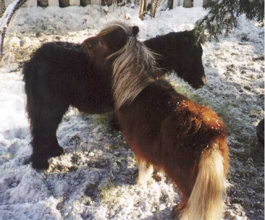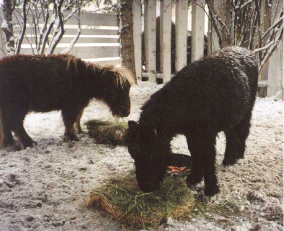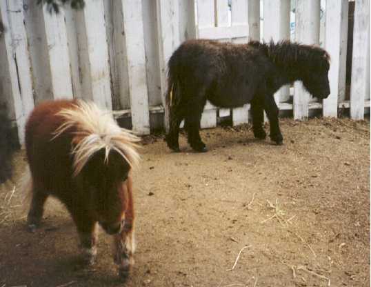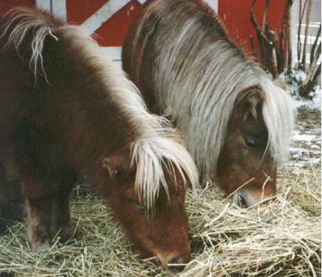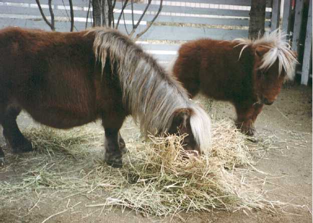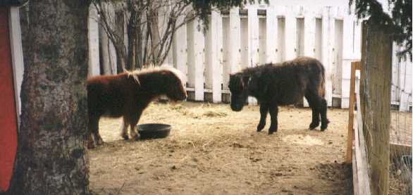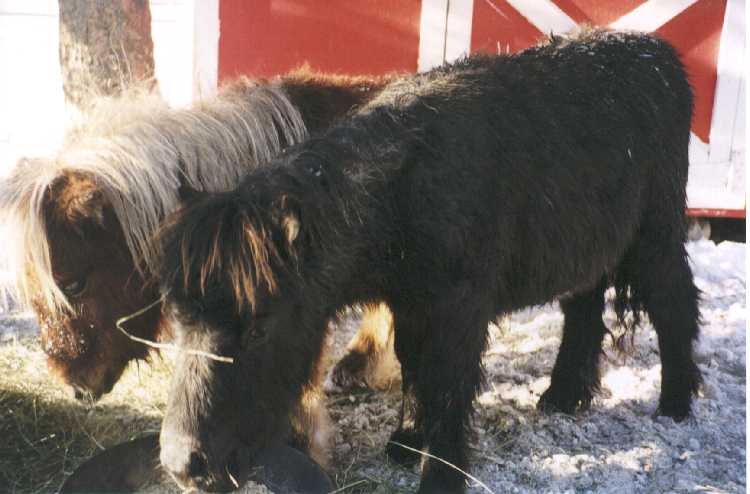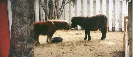 I have to admit that this page is grossly out of date. I last updated it back in 1998, and in the last ten years my horses have grown from small colts into adult minis, still as loveable as ever but a wee bit heavier if they step on your toes! Between work, housework, and taking care of the boys, updating the page has been a bit of a low-priority item. The biggest problem now with updating this page is sorting through the hundreds of pictures that I have of the boys, and trying to decide which ones to use. Compounding the issue is that we finally purchased a farm out in Saskatchewan, and are in the midst of moving. I hope that visitors to this page will be patient (after 10 years, what's a couple more months?) and will come back now and again, as I will eventually revamp the site and bring it all up to date.